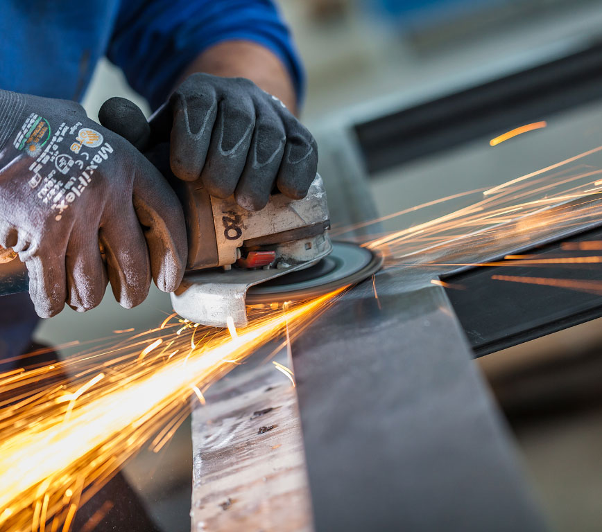 Um eine saubere und glatte Oberfläche für die Oberflächenbehandlung zu erzeugen, schleifen wir die Schweißnähte der Stahlkonstruktionen.